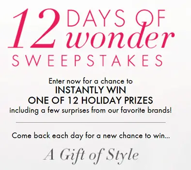 Enter the 12 Days Of Wonder Sweepstakes for your chance to instantly win one of 12 Holiday Prizes from Ann Taylor.