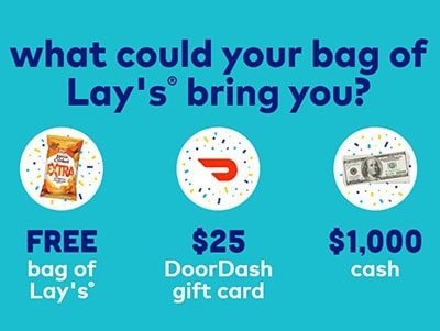 You can enter the LAY’S Bags of Joy Instant Win Game from LAY’S for your chance to be 1 of 50 instant winners of a $1,000 cash prize awarded in the form of a check. You’ll also have a shot at being 1 of 5,000 winners of a $25 DoorDash gift card or 1 of 40,000 winners of a free bag of LAY’S Potato Chips. Entry ends March 26, 2021.