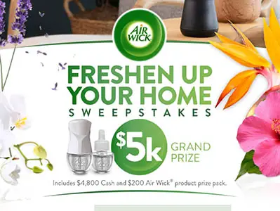 You can enter the Freshen Up Your Home Sweepstakes from HGTV & Air Wick for your chance to win the $5,000 grand prize that includes $4,800 cash and a $20 Air Wick prize pack! If you win you can freshen up with Air Wick products and use the money for a makeover. Entry in the sweepstakes ends at 5:00 p.m. ET on May 27, 2022.