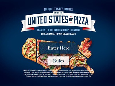 You can enter the United States of Pizza Flavors Recipe Contest from Bogle Vineyards for your chance to win $5,000 cash awarded in the form of a check. You’ll also have a chance to be one (1) of four (4) finalists to win a $500 prepaid gift card and a Pizza Oven, valued together at $1,000. To enter, you’ll submit an original “pizza recipe”. Entry ends May 31, 2021.