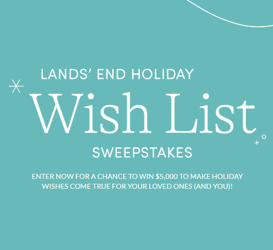 You can enter the Lands’ End Holiday Wish List Sweepstakes from Lands’ End for your chance to be the grand prize winner of $5,000! With the Lands’ End Holiday Wish List Sweepstakes, you have the opportunity to make your holiday dreams a reality. Whether you’re envisioning a luxurious vacation, a home makeover, or simply the joy of spoiling loved ones with meaningful gifts, $5,000 can make it all possible. Entry in the sweepstakes ends 11:59:59 PM CST on December 27th, 2023.