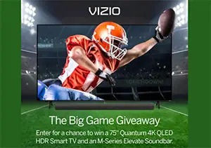 You can enter the Big Game Giveaway from VIZIO on Facebook for your chance to be the grand prize winner a VIZIO 75″ Quantum 4K QLED HDR Smart TV and a M-Series Elevate Sound Bar. One winner will be selected from each of their social media platforms- Facebook, Instagram and TikTok. Entry in the giveaway ends at 12:00 PM PT on February 9, 2024.