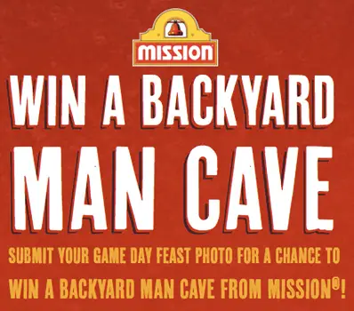 Share a photo of your game day feast in the Mission Outdoor Man Cave Giveaway Sweepstakes for chance to win a backyard mancave including a high end bbq grill, an outdoor flat screen TV with sports package, a year supply of Mission Tortilla Chips, and grilling accessories!
