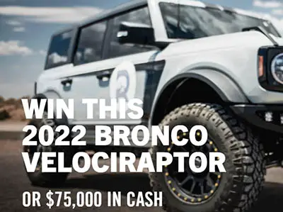 You can enter the Hennessey Summer Sweepstakes from The Ridge for your chance to be the grand prize winner of a Ford Bronco Hennessey VelociRaptor 400 Heritage Edition or $75,000 in cash! This is the ultimate Bronco in the most American way possible: bigger, taller, and more power! You don’t have to make a purchase to enter. Entry in the sweepstakes ends at 11:59 PM (EST) on 9/29/22.