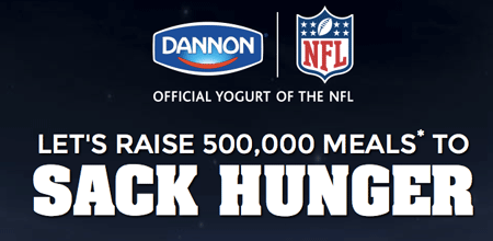 One lucky winner will receive a Super Bowl 50 Prize Package for two (worth over $14,000). Plus, there will be 480 winners of $25, $50, and $100 NFLShop.com Gift Card e-codes in the Dannon Sack Hunger Sweepstakes.