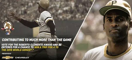 Enter for a chance to win a trip for 4 to the 2015 World Series in the MLB Roberto Clemente Award Sweepstakes.