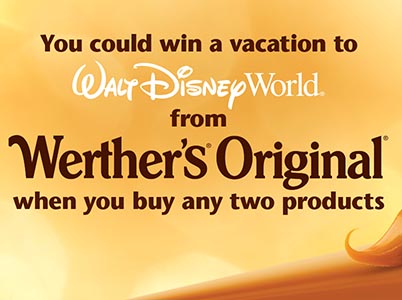 You can enter the National Caramel Day Sweepstakes from Werther’s Original for your chance to win a vacation for two (2) to Walt Disney World Resort near Orlando, FL. The vacation includes airfare, accommodations, 4 days of park admission, ground transportation, and a $300 Disney gift card. Entry ends May 16, 2021.