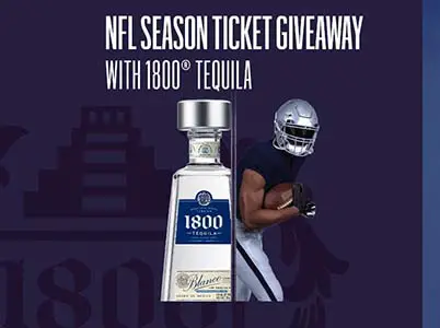 You can enter the NFL Season Ticket Giveaway from 1800 Tequila for your chance to be the grand prize winner of two (2) Season tickets for 2023-2024 season of the NFL team of your choice! Entry in the sweepstakes ends at 11:59:59 p.m. ET on February 19, 2023.