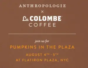 You can enter the Anthropologie x La Colombe Pumpkin Sweepstakes from Anthropologie for your chance to be the grand prize winner of one $500 Anthropologie Gift Card! The prize includes a $100 La Colombe Gift Card to use online or in-store at La Colombe retail locations. Entry in the sweepstakes ends at 11:59:00 PM ET on 8/18/23.