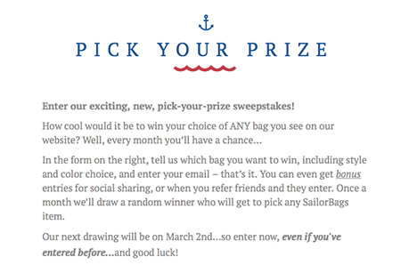 We love it when retailers offer a chance to win your choice of their merchandise, like this giveaway from Sailor Bags for any bag you see on their website! My favorite is the nautical stripes beach tote! Tell them your for your chance to win!