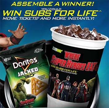 Subway is offering you a chance to win subs for life, movie tickets and more instantly when you assemble a winner in their Where Heroes Eat Sweepstakes.
