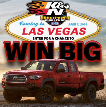 Get your chance to win a trip for 2 to the K&N Horsepower Challenge where one lucky winner will win a new truck: a 2016 Toyota Tacoma from K&N Horsepower Challenge Instant Win Game and Sweepstakes.