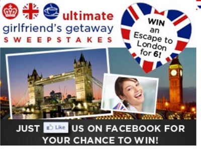 The Ultimate Women’s Expo is offering you a chance to win the Ultimate Girlfriend’s Getaway for you and your 5 BFF’s to London, England for a 5 Night, 6 day stay. [message type=”custom” start_color=”#e3fdf8″ end_color=”#f0fffc” color=”#333333″ border=”#e3fdf8″] Girlfriend’s Getaway Details Sweepstakes Entry URL: Ultimate Women’s Expo Facebook Sweepstakes Rules URL: Ultimate Women’s Expo Facebook Official…