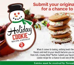 You can enter the Holiday Cookie Recipe Contest from Real Butter by submitting your original cookie recipe for your chance to win the grand prize of $3,000, the first place prize of $1,500 or third place of $750. Entry ends November 01, 2016.