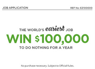 Enter for a chance to win $100,000 so you can do nothing for a whole year in the Groupon World’s Easiest Job Sweepstakes Please be aware: they’d really the winner to be committed to not lifting a finger (except to order pizza or sip a drink by the pool) for one year’s time. Best of luck!