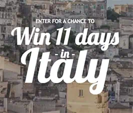 You can enter the Explore Italy Sweepstakes from Mezzetta for your chance to win a trip to Italy for an 11 day guided tour that includes airfare, accommodations, a cooking class and more. Entry ends October 15, 2016.