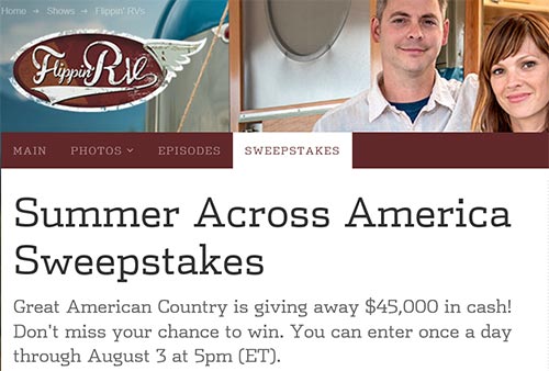 Great American Country is offering you a chance to win $45,000 cash in the Summer Across America Sweepstakes – you can enter once per day through August 3rd at 5pm EST.