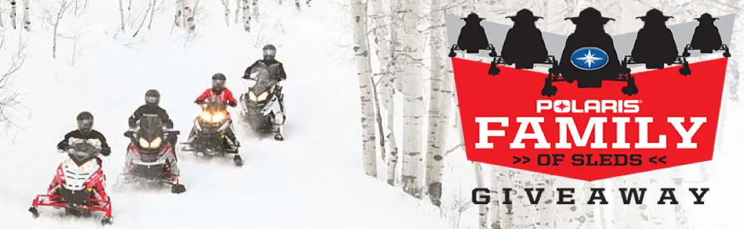 Enter for a chance to win the Polaris Family of Sleds Giveaway by visiting your local Polaris Dealer to receive an entry code needed to enter, fill out the required fields online, answer a few questions and submit to have a chance to win your very own family of sleds! Each winner will receive a total of 5 sleds worth a total of $40,795 – $42,395.