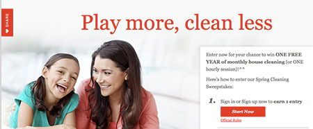 Enter for your chance to win a free year of Housecleaning in the form of a check for $2,400 in the Healthy Essentials Spring Cleaning Sweepstakes.