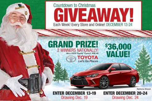 Enter each week for a chance to win an XBOX ONE, and the grand prize 2015 Toyota Camry XSE in the Bass Pro Shops Countdown to Christmas 2014 Sweepstakes!