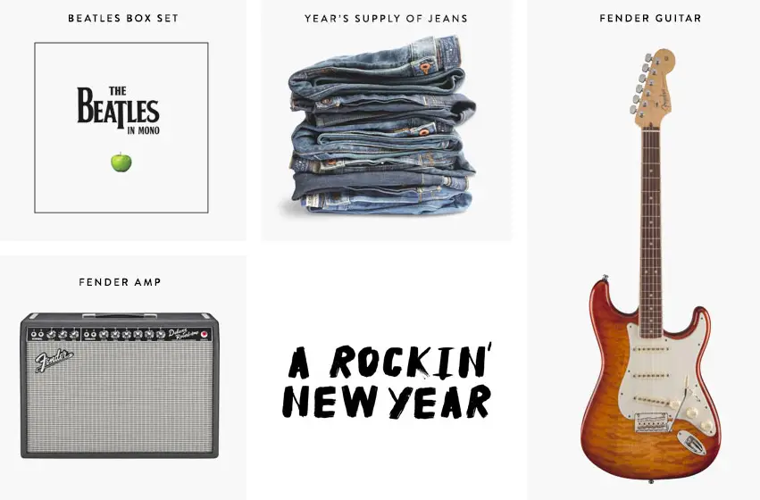 Enter the Lucky Brand Have a Rocking New Year Sweepstakes for your chance to win a Fender Guitar and Amplifier, signed Rolling Stones Box Sets, a Lucky Brand leather jacket, Lucky Brand Rock Tees for a Year and more!