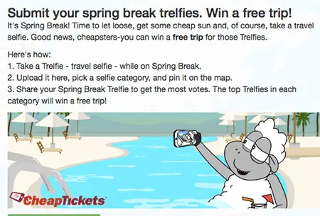 Submit your spring break trelfies (travel selfies) for a chance to win a free trip! It’s Spring Break! Time to let loose, get some cheap sun and, of course, take a travel selfie. Good news, cheapsters – you can win a free trip for those Trelfies.