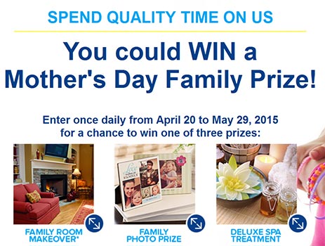 Nestle is offering you a chance to win one of three Mother’s Day Family prizes that include a family room makeover, a family photo prize or a deluxe spa treatment.