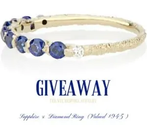 You can enter the Diamond & Sapphire Giveaway from TerNYC for your chance to win a custom made Sapphire and Diamond Ring valued at $945. Using an unruly and rebellious technique known as “cast in place”, 8 rich blue sapphires and dainty diamonds are set in such a way that the gold forms around the stones. Entry ends September 07, 2018.