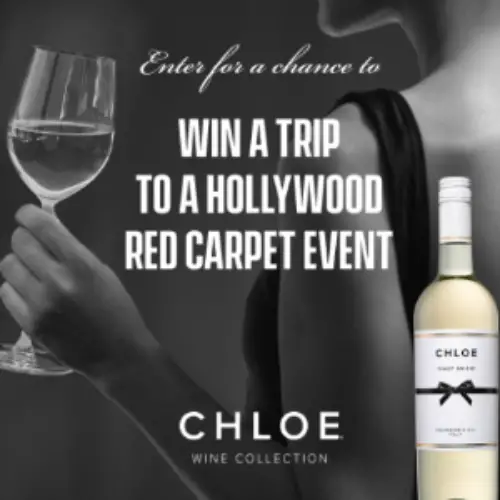 You can enter the Red Carpet Sweepstakes from Chloe Wine Collection for your chance to win a trip for two (2) to a Red Carpet event in Hollywood. The prize includes round-trip airfare for two, two-night hotel accommodations, admission to awards show, and transportation. The total value of the prize is estimated at $6,850. Entry ends February 28, 2019.