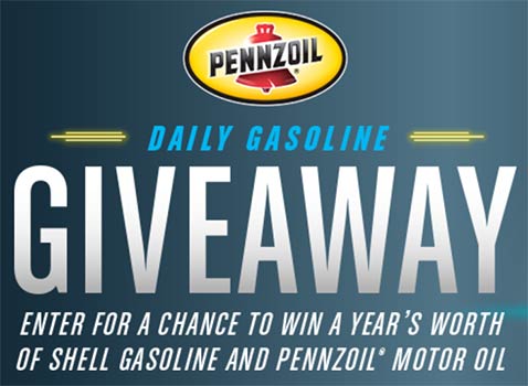 Pennzoil is offering you a chance to win a year’s worth of Shell gas and Pennzoil motor oil – there’s one winner every day in may – in their Daily Gasoline Giveaway.