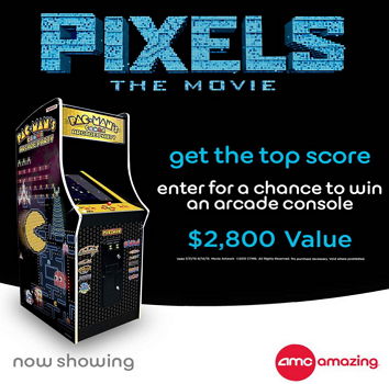 AMC Theatres is offering you a chance to win an arcade console valued at $2,800 in their Pixels the Movie Giveaway.