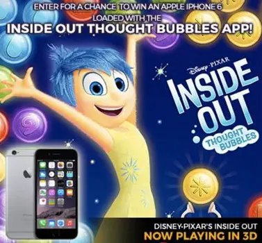 Enter for a chance to win an iPhone 6 loaded with the Inside Out Thought Bubbles bubble shooter game based on the movie in the AMC Theaters Inside Out Movie Giveaway!