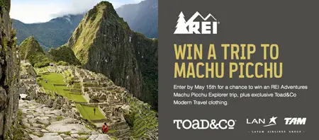 Enter for a chance to win an REI Adventures Machu Picchu Explorer trip, plus exclusive Toad&Co Modern Travel clothing in the the Toad Co Modern Travel Peru Sweepstakes.