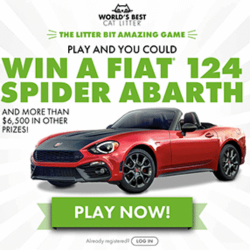You can play The Litter Bit Amazing Game from the World’s Best Cat Litter for your chance to win a Fiat 124 Spider Abarth valued at over $30,000 and more than $6,500 in other prizes including cash, travel vouchers and cat litter. Entry ends September 17, 2017.