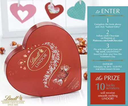 Enter for your chance to win one of ten 75-count bags of Lindt Lindor Milk Chocolate truffles for you or your valentine.
