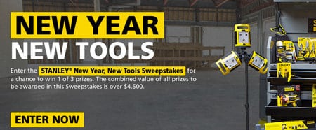 Enter the Stanley New Year, New Tools Sweepstakes for a chance to win 1 of 3 Tool Prize Packages. Wouldn’t it be nice to kick off 2016 with a garage full of new tools?