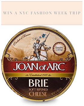 Joan Of Arc Brie is offering you a chance to win a trip for two to NYC during Fashion Week including airfare, accommodations and travel plus $500 to spend while your there.