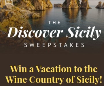 You can enter the Discover Sicily Sweepstakes from WineMag for your chance to win a 4-day, 3-night vacation for two to the wine country of Sicily that includes airfare, ground transportation, lodging, meals and private wine tastings. Entry ends February 28, 2017.