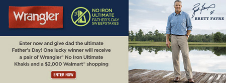 Enter the No Iron Ultimate Father’s Day #Sweepstakes for your chance to #win a $1,000 Walmart shopping spree and a pair of Wrangler No Iron Ultimate Khakis. Fathers’ Day is right around the corner and Wrangler’s wants you looking good!